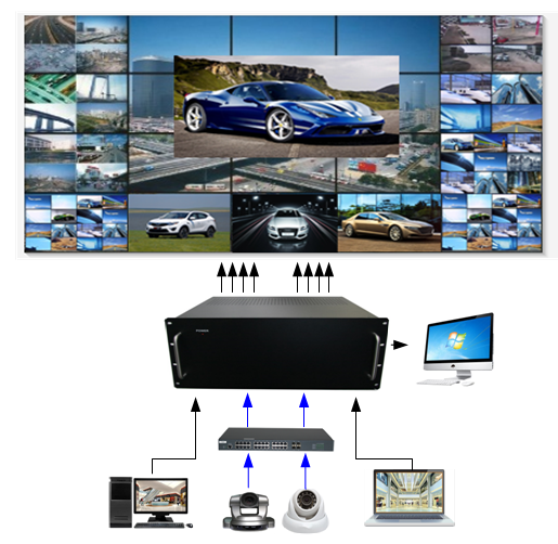 外置拼接解碼處理器(H.265)是專門為同時接入處理網(wǎng)絡(luò)攝像機(IPC)和外部源輸入信號(HDMI,DVI,VGA等)而設(shè)計,采用最新的專用圖像解碼芯片與FPGA搭配,通過專用圖像解碼芯片解碼網(wǎng)絡(luò)攝像機的信號,然后再和通過FPGA接入的外部源輸入信號混合處理,實現(xiàn)圖像切換,拼接,開窗,漫游等功能,是目前解決網(wǎng)絡(luò)攝像機